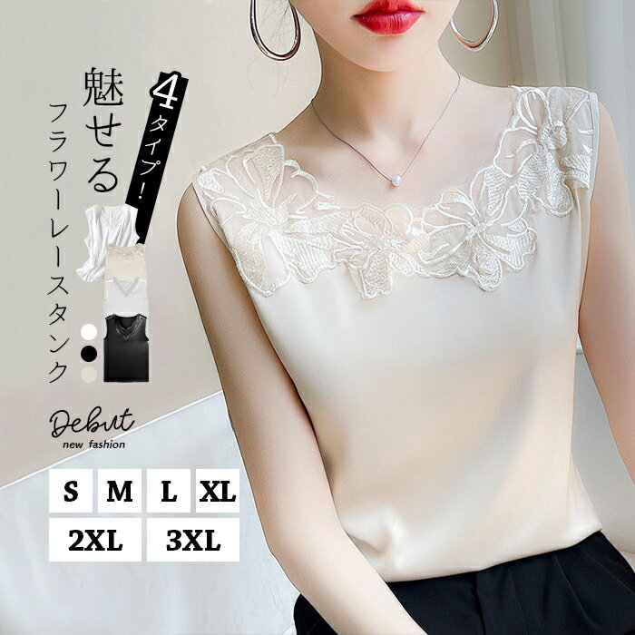 大人カジュアルなタンクトップ&ゆったりシルエットでボディーラインを綺麗に見せてくれる♪一枚持っておくと様々なコーデに合わせやすく、ノーマルなのに一味違う印象を醸し出す!タンクトップ シルク キャミソール 4タイプ レディース レース インナー Vネック シルクサテン 大きいサイズ Uネック トップス ノースリーブ ブラウス ショート丈 ブラ紐隠し 刺繍 アンダーウェア 重ね着 光沢 薄手 ツルツル 上品 敏感肌