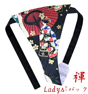 Japanese UnderWear ギフト 海外お土産に 日本美【こだわり工房】ふんどしショーツ ふんどしパンツ 女性用 レディース Tバック ビキニ 和柄 京都 舞妓 Maiko Girl 桜 絵巻柄 日本製 ブラック ゴールド ちょこっとオーダー可