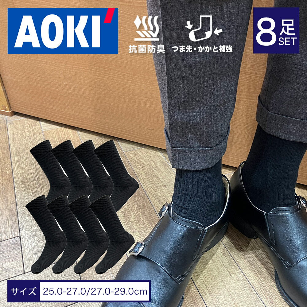 [アオキ]【 8足組 】 ビジネス ソックス 抗菌 防臭 加工 メンズ つま先 かかと 補強 すね 素肌 見せない 冠婚葬祭 礼装 ギフト プレゼント 父の日 就活 社会人 学生 27.0 29.0AOKI ソックス 8点セット ビジネス 抗菌防臭 お得 靴下 くつした スーツ屋 定番 人気 商品 黒 紺 グレー まとめ買い 大きいサイズ シンプル オールシーズン 臭い 紳士 ブラック ネイビー