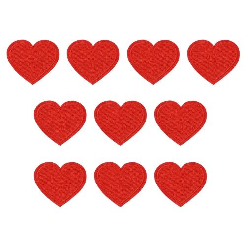 PATIKIL アイロンで貼るパッチ 10個入り ハート型刺繍パッチ 洋服 ジャケット 帽子 バックパック 修理装飾用 赤色
