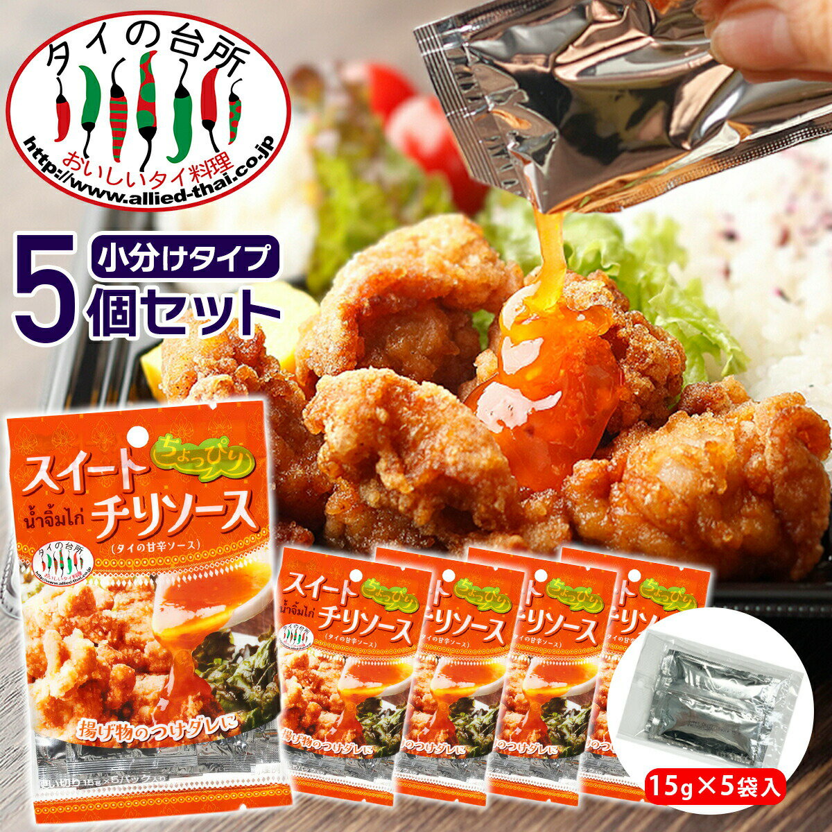 生春巻きや揚げ物の付けダレとして大人気。お弁当にもぴったりな使いきり小袋15gが5パック入っています【メール便送料無料】 【5個セット】タイの台所 ちょっぴりスイートチリソース 15g×5p 賞味:25.09.30 タイ料理 食材 調味料 エスニック料理 食品 生春巻き ベトナム料理 使いきり