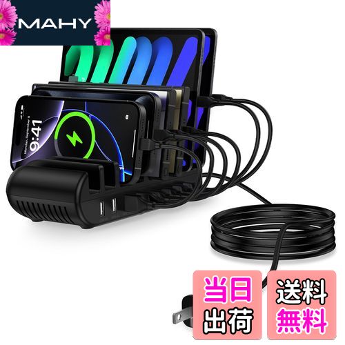 【送料無料】首佩 急速充電60W 6ポートUSB充電ステーション、PSE認証済 充電スタンド 6本の充電ケーブルが含まれ、 iPhone iPad iWatch iPodと互換性があり、I-Watch充電器ホルダー、電話、タブレット、その他の電子機器用