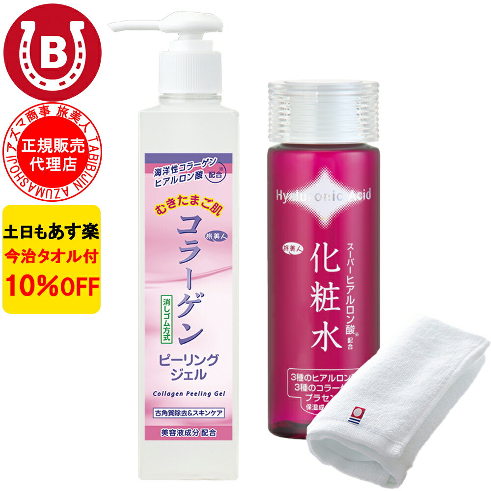 アズマ商事 コラーゲンピーリングジェル スーパー ヒアルロン酸 化粧水 セット10%OFF 今治タオル付 アズマ商事 コラーゲンピーリングジェル スーパー ヒアルロン酸 化粧水 セット 旅美人 美水泉 コラーゲンシリーズ アズマ商事のコラーゲンピーリングジェル ヒアルロン酸化粧水 スーパーヒアルロン酸化粧水 送料無料