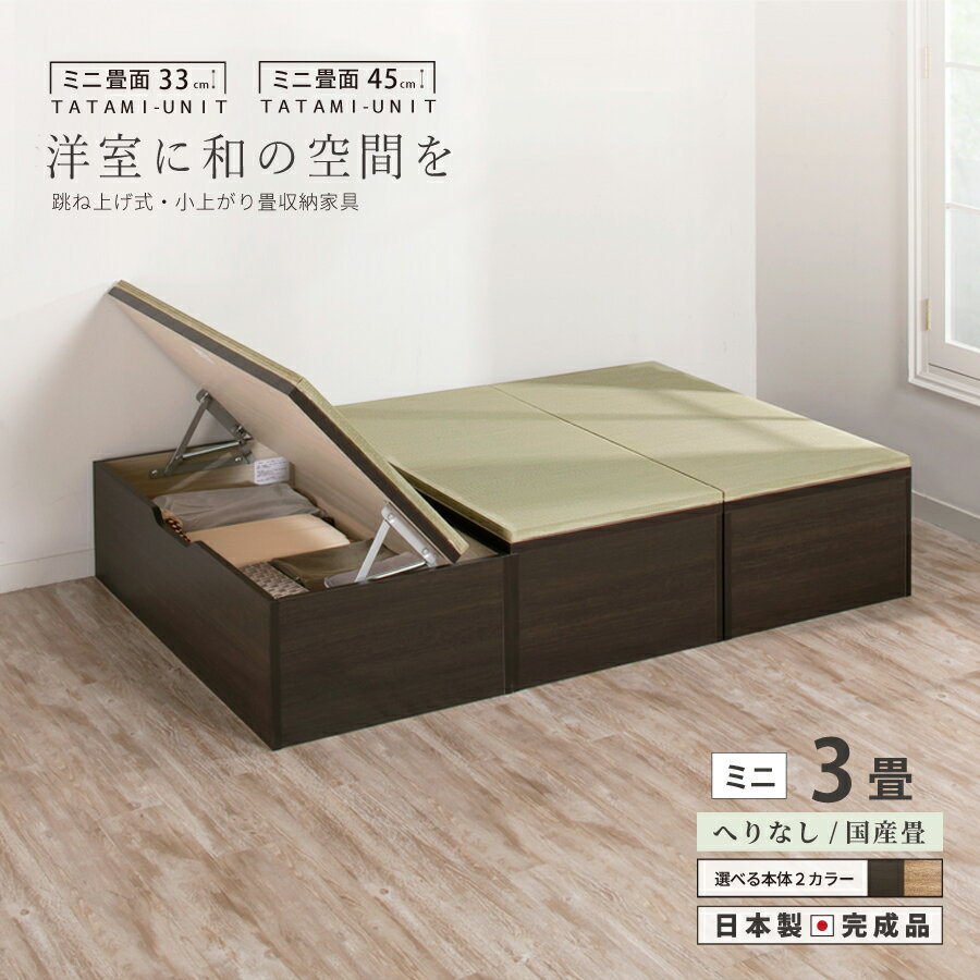 2022年発売 改良新型 跳ね上げ式畳ユニット【お部屋の中まで らくらくお届け】 畳ベッド 収納 畳ユニット 日本製ユニット畳 ミニ3畳セット 高さ33 45cm イ草 ヘリ無し へりなし 国産畳跳ね上げ式 収納高床式ユニット 収納ベンチ日本製 国産 組立不要 完成品 たたみ タタミ2022年型