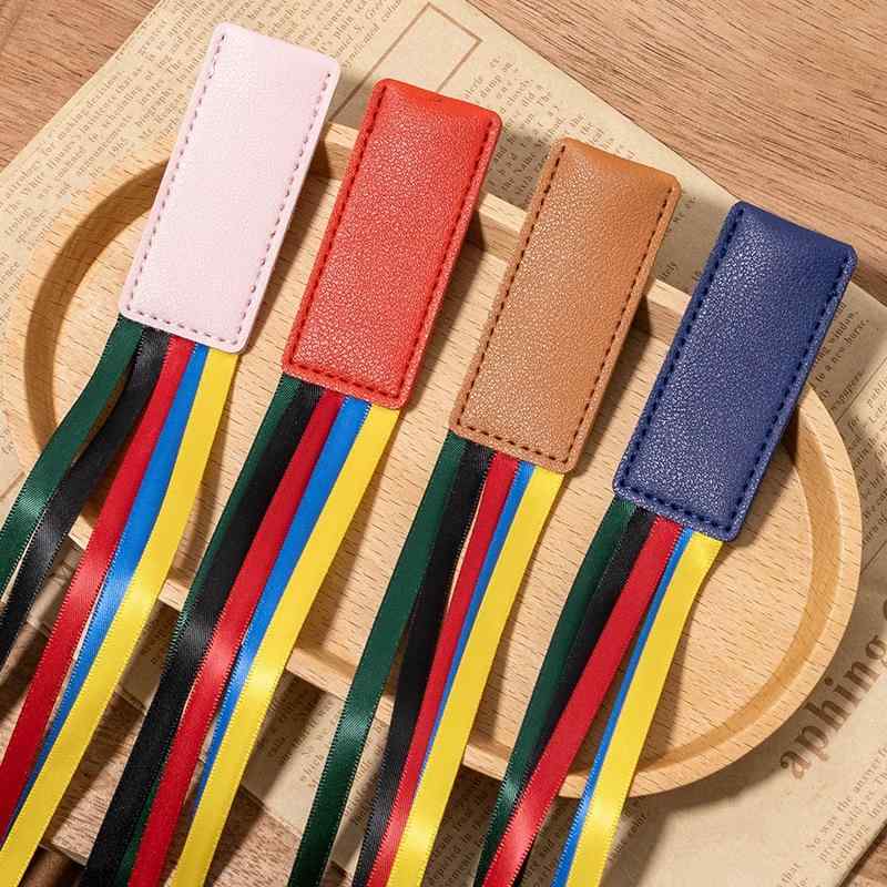 本 しおり おしゃれ ブックマーク PU レザー 目印 タグ インデックス ギフト 読書 ノート シンプル グレー 茶色 ピンク 無地 リボン