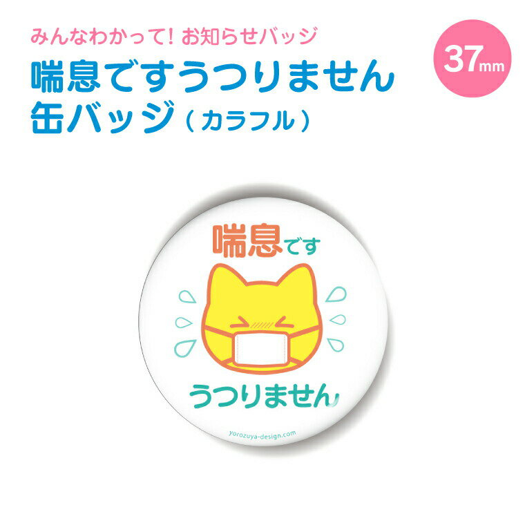 喘息による咳などの症状をお知らせするバッジ小ぶりでかわいい お知らせ 缶バッジ 丸型37mm (喘息です うつりません カラフル) 《 敬老の日 2025 おしゃれ グッズ 小さい 缶バッジ かわいい プレゼント ギフト 記念品 土産 推し活》