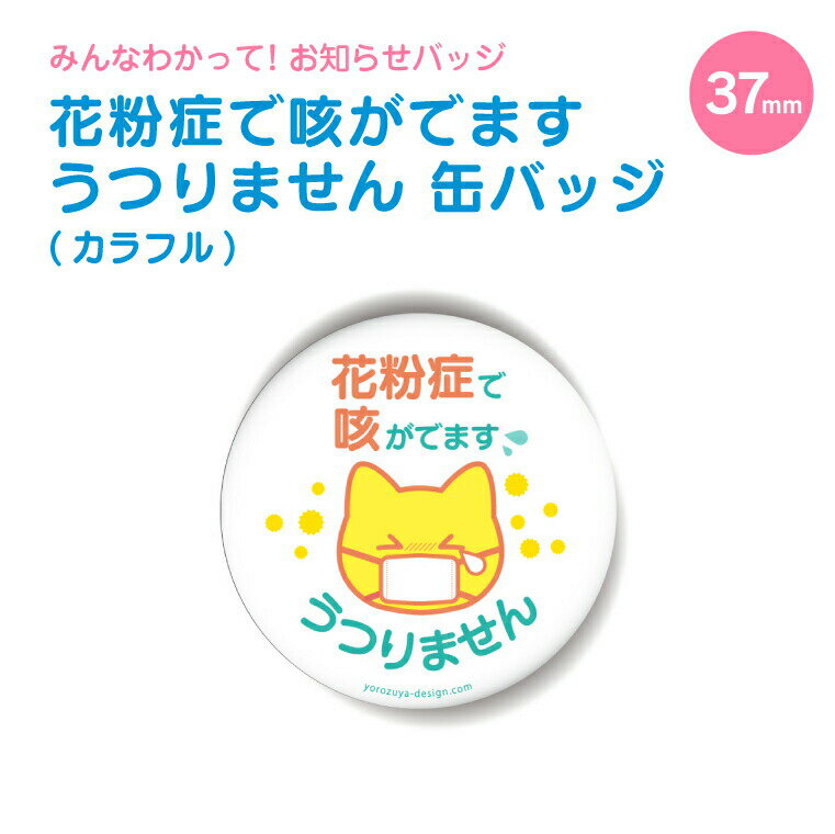 花粉症による咳症状をお知らせするバッジです小ぶりでかわいい お知らせ 缶バッジ 丸型37mm (花粉症で咳が出ますうつりません カラフル) 《 敬老の日 2025 おしゃれ グッズ かわいい 七五三 節句 入園 入学 卒業 卒団 プレゼント ギフト 記念品 土産 推し活》