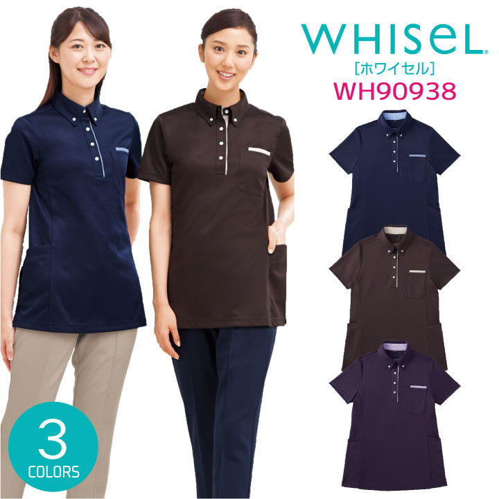 WH90938 ホワイセル レディース半袖ポロシャツ ダークカラー 大人 おしゃれ 落ち着いた シック 体型カバー チラ見え防止 長め 医療 介護 ヘルパー半袖ポロシャツ ロングポロシャツ WHISEL ホワイセル ヘルパーウエア 吸汗 速乾 女性 レディース ボタンダウン ニット スリット 胸ポケット 抗菌 消臭 収納力抜群 ポケット 自重堂 jd-wh90938
