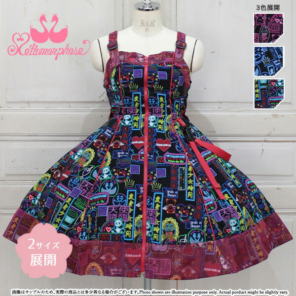Metamorphose ブランド 公式 Lolita ワンピース 大きいサイズ ピンク 水色 赤 ネオンカラー サイバーパンク ふんわりシフォン モノトーン【予約】メタモルフォーゼ 電脳Neon少女フレアジャンパースカート 【2サイズ展開】【ロリータファッションロリィタPlusSize】【第1期:2025年11月~12月入荷】【第2期:2026年2月~3月入荷】