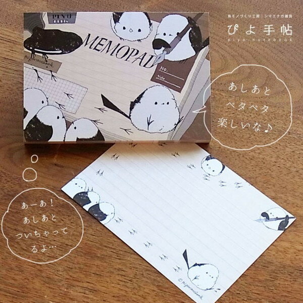 ぴよ手帖◆シマエナガの毎日使えるかわいい雑貨♪メモ帳 足あとついてるよ!◆ゆうパケット対応◆ シマエナガ ことり 小鳥 雑貨 グッズ 80枚入り 上質紙 ヨコ 横長 角型 イラスト かわいい おしゃれ ユニーク ライン 罫線 めも メモ用紙 伝言メモ お手紙 グリーティング クリエイティブモーション【ぴよ手帖】