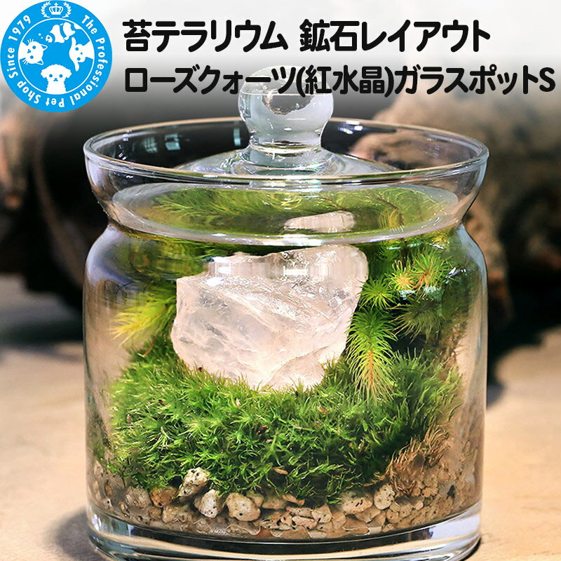 株式会社チャーム charm 観葉植物 苔テラリウム インテリア・雑貨 グリーン ガラスボトル ガラスポット ガラス容器 苔 鉱石レイアウト【ふるさと納税】苔テラリウム 鉱石レイアウト ローズクォーツ(紅水晶)ガラスポットS 説明書付
