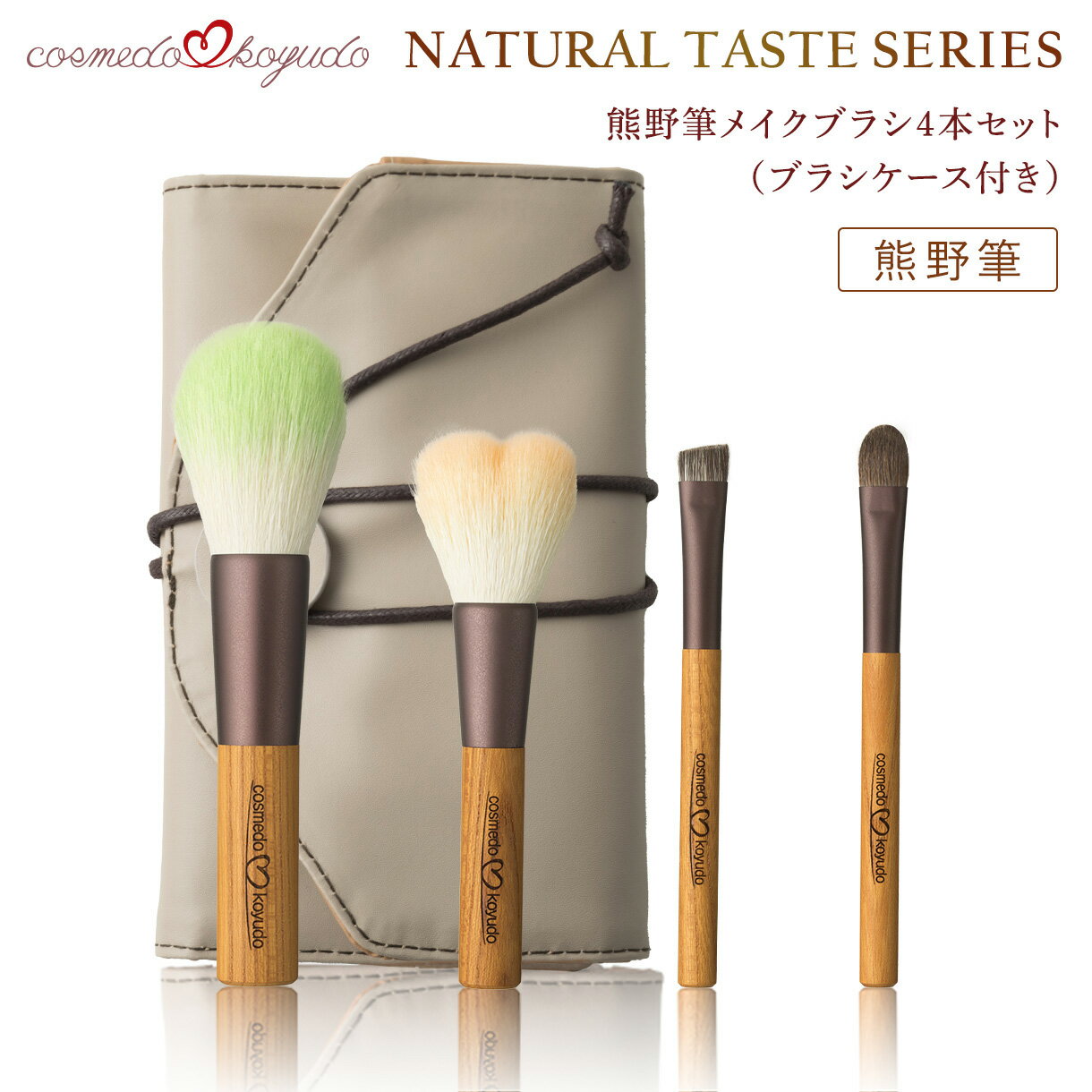 セットでお得!世界に誇る熊野筆【cosmedo&koyudo】熊野筆ナチュラルテイストシリーズ メイクブラシ4本セット(ブラシケース付き)手作りの逸品 高級 内祝 結婚祝い おすすめ 人気 贈答ブラシケース付き【コスメ堂 × 晃祐堂】 熊野筆 メイクブラシ4本+ ケースのセット 日本製【パウダーブラシ ハートチークブラシ アイシャドウブラシ アイブロウブラシ 専用ポーチ】メイクブラシセット 熊野化粧筆 フェイスブラシ 誕生日 プレゼント ギフト 就職祝 母の日