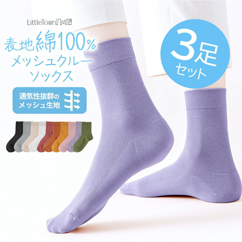 送料無料 表糸は超長綿100%使用のメッシュ生地 さらっとした履き心地 通気性も高く伸縮性もあるので 履き心地は抜群綿100% 表糸 メッシュ クルーソックス 3足セット 綿 コットン 靴下 クルー ソックス 22cm-24cm 通気性 涼しい 蒸れない レディース 女性用 くつした くつ下 クルー カラー お洒落 おしゃれ カジュアル ルームソックス リブ 伸縮 差し色 春 夏 綿100