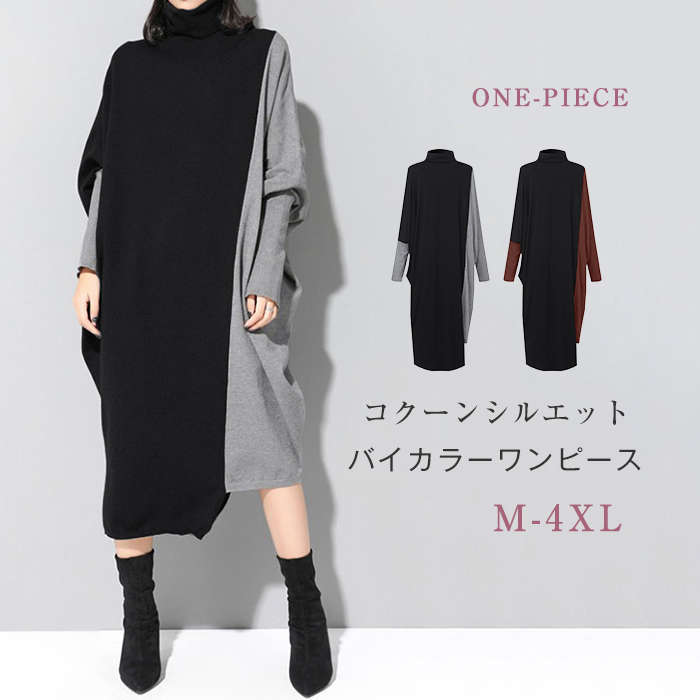 ワンピース レディース 春 秋 ハイネック ドルマン ロング丈 コクーン バイカラー ワンピース ロング丈 ワンピース コクーンワンピース 大きいサイズ ビッグシルエット お洒落ワンピース レディース 春 秋 ハイネック ドルマン ロング丈 コクーン バイカラー ワンピース ロング丈 ワンピース コクーン ワンピース 大きいサイズ ビッグシルエット お洒落 体型カバー 着痩せ シンプル