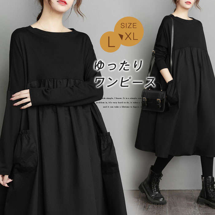 コクーンワンピース すっぽり 体型隠し 切り替え Iライン ブラック 綿 コットン 異素材 ミモレ丈 オシャレ きれいめ フリーサイズ 着痩せ 着心地いい カジュアル 通勤 オフィス コーデワンピース コクーン ロングワンピース レディース 長袖 丸首 黒 コクーンワンピ ロング丈 Aライン ゆったり 異素材ワンピース コクーンスカート 切り替えワンピース 長袖ワンピース 体型カバー カジュアル ミモレワンピース マタニティウェア