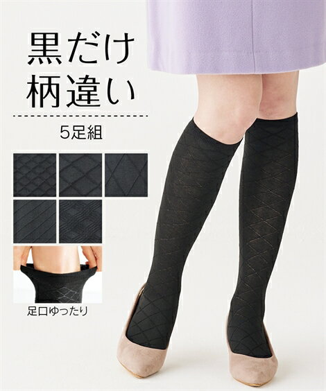 レディース インナー大きいサイズ レディース 足口ゆったり黒柄ハイ ソックス 5足組 黒柄 23.0~25.0cm ニッセン nissen
