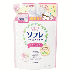 デリケートなお肌を考えた 低刺激タイプのミルク入浴液 詰替え 4548514158740バスクリン ソフレ マイルド・ミー ミルク入浴液 ふんわり金木犀の香り つめかえ用 600mL 入浴剤