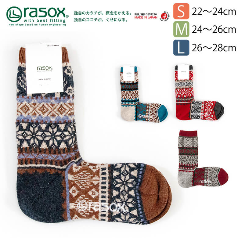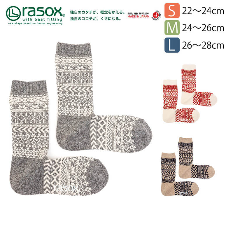 rasox ラソックス シンプルなスタイリングにアクセント!★期間限定!最大15%OFFクーポン対象★rasox(ラソックス) ニューノルディック・ウール ソックス L字型 靴下 くつ下 メンズ レディース 日本製 (ca242cr01)【メール便送料無料/コンビニ・代引不可】【ラッピング無料対象】