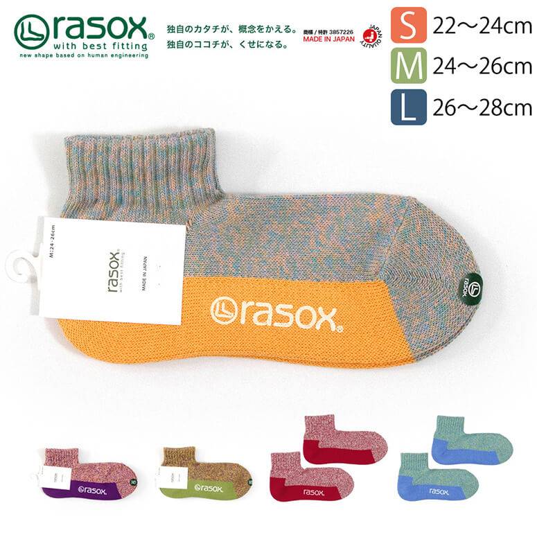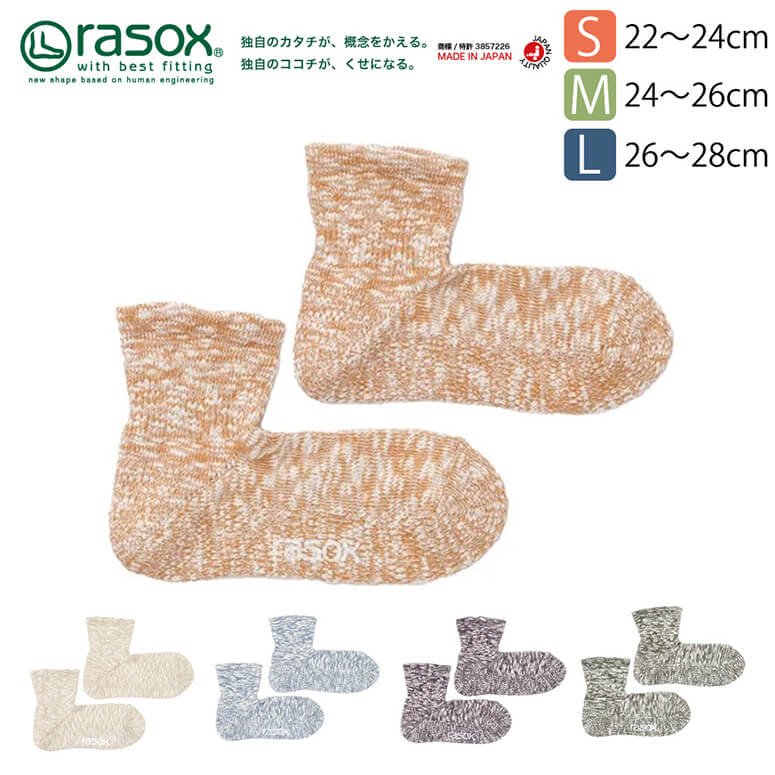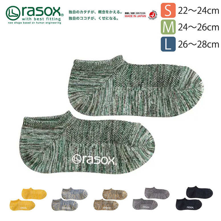 疲れにくいL字型靴下「ラソックス」★期間限定・ポイント15倍商品★【送料無料】rasox(ラソックス) メランジカラー・アンクル ソックス L字型 靴下 くつ下 メンズ レディース 日本製【コンビニ受取対応商品】