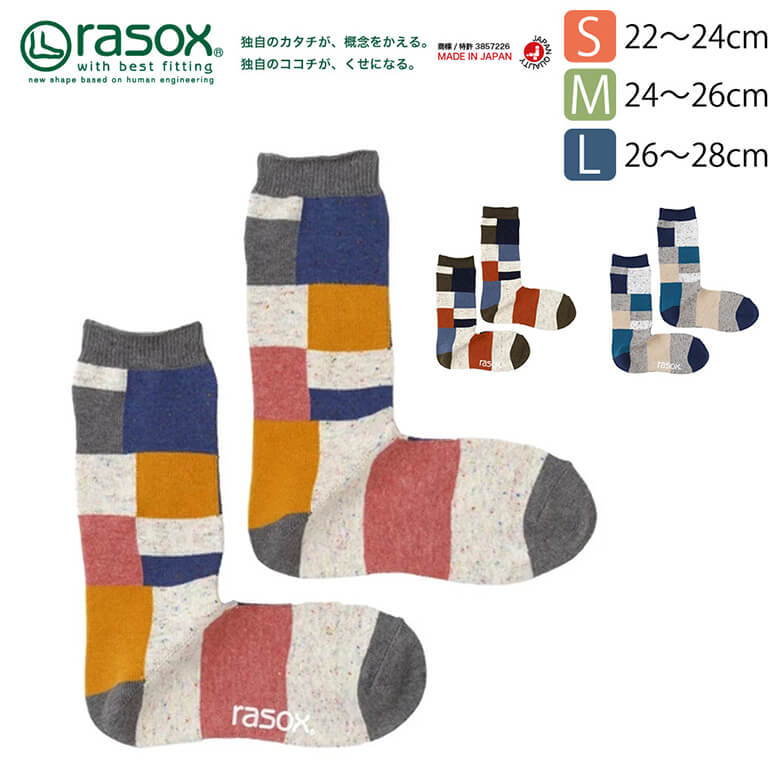 疲れにくいL字型靴下「ラソックス」★期間限定・ポイント15倍商品★【送料無料】rasox(ラソックス) パッチワークコットンネップ ソックス 日本製 L字型 靴下 くつ下 メンズ レディース 日本製 プレゼント