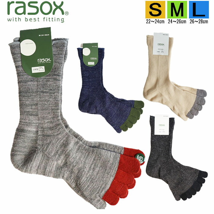 日本製 ストレスフリー おしゃれ むくみ対策 送料無料 沖縄県・離島は送料別途ラソックス 正規取扱店 日本製 rasox CA202CR01-FFウォームクルー5本指 ソックス まとめ買い L字型 靴下 くつ下 直角 レディース メンズ 女性 男性